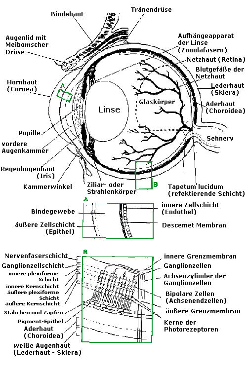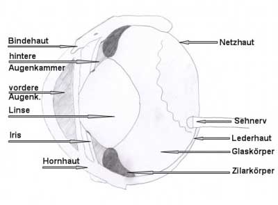 Lederhaut: Äußere weiße Augenbegrenzung.