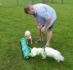 Teilnehmer, die mit zwei Hunden
